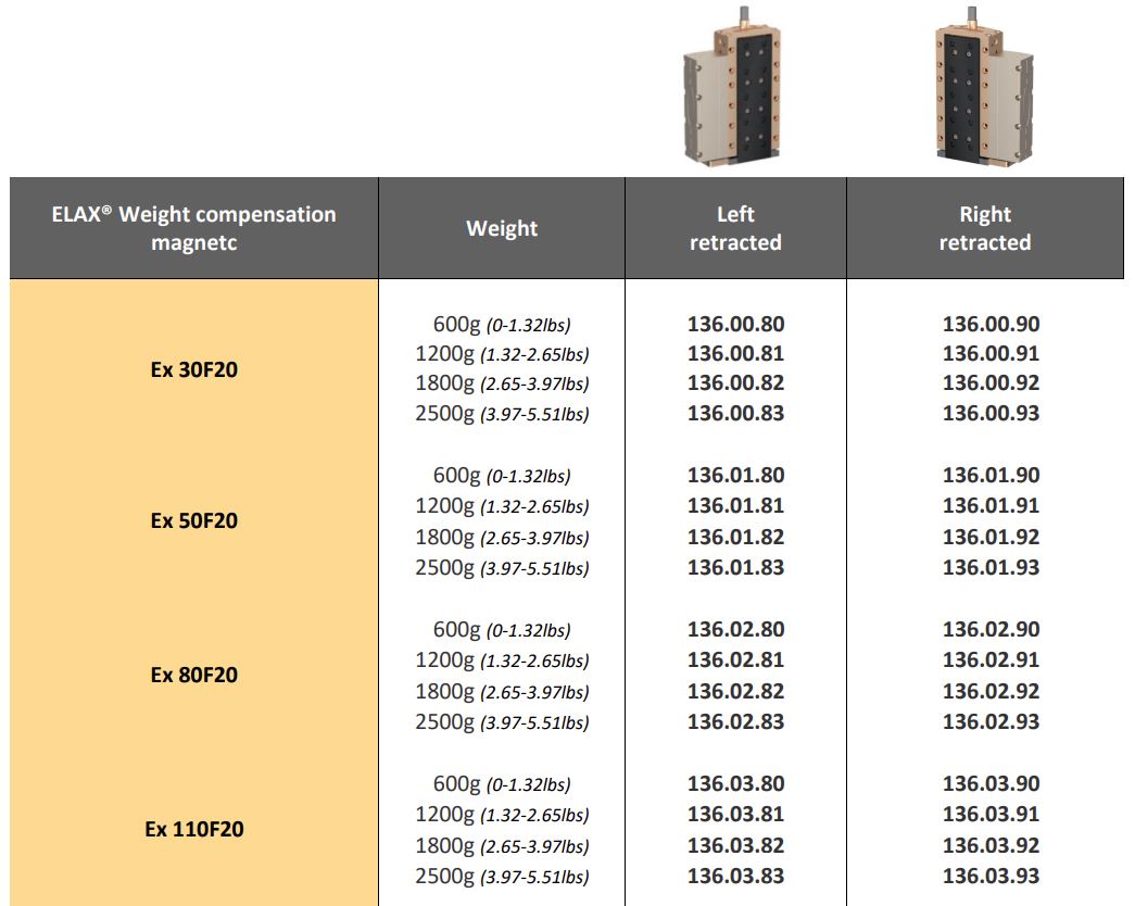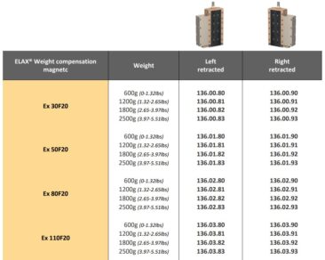 Voor de ELAX® Ex 30F20 tot Ex 110F20 lineaire motoren van Jenny Science is nu ook magnetische gewichtscompensatie beschikbaar, naast de reeds bestaande gewichtscompensatie met veren.