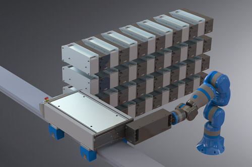 Elke STEIN link® Shuttle heeft een eenvoudig verwisselbare accu, die handmatig of volledig automatisch kan worden vervangen. Dit levert diverse voordelen op voor het gehele systeem. Enerzijds kan het spoor eenvoudig en kosteneffectief worden gehouden, omdat er geen complexe elektrische bedrading nodig is. Ten tweede heeft de laadtijd geen invloed op de cyclustijd en de beschikbaarheid van de shuttles. Bovendien maakt dit het gehele systeem uiterst betrouwbaar en onderhoudsarm.